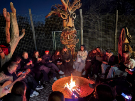 Der zweite Tag begann mit einem gemeinsamen Frühstück. Nach einer kurzen Pause starteten wir unsere Schnitzeljagd: Gemeinsam mussten wir Rätsel lösen, um an Codes zu gelangen. Danach folgte ein Drogenseminar, bei dem die Stimmung etwas ernster wurde. Wir erfuhren viel über verschiedene Drogen und deren Auswirkungen. Am Abend wartete das absolute Highlight auf uns: ein Lagerfeuer. Wir saßen beieinander, sangen mit Frau Gerbsch alte Lieder, hörten das Knistern des Feuers, lachten gemeinsam und lernten uns noch besser kennen. Es war so schön, dass niemand gehen wollte.