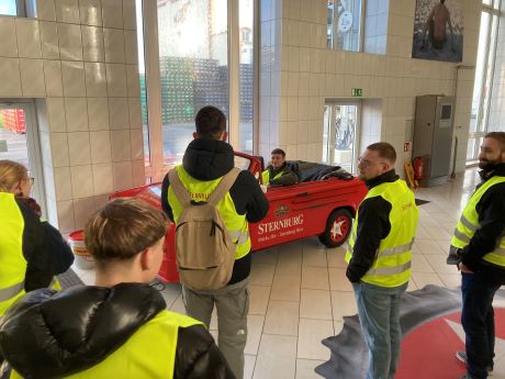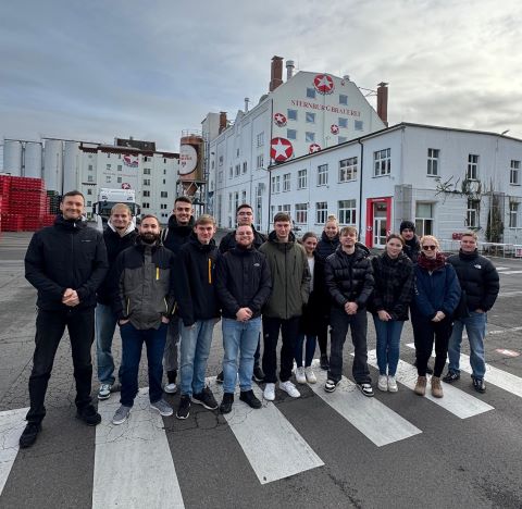 Biotechnik zum Anfassen und ganz praktisch erlebten die Chemikanten CH22 in die Sternburgbrauerei. Im Rahmen des Wahlpflichtbereichs fuhr die Abschlussklasse gemeinsam mit Herrn Knofe nach Leipzig, um sich Gärung und Brauprozess im Speziellen anzusehen. Von gedarrtem Malz über Maischpfanne bis Läuterbottich wurde alles in der Hand gehalten oder angeschaut. Nur das fertige Bier gab´s danach leider nicht, war ja schließlich Unterricht.