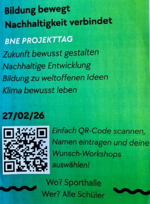 Unter Leitung von Frau Gorgas-Ott und Frau Kiesel wurden die Angebote für einen Projekttag der gesamten Schule aufbereitet und über ein Einschreibeportal für alle am 27.02.26 anwesenden Klassen bereitgestellt. Es gab z. B. Module zu nachhaltigen Finanzen, dem Schutz der Meere oder Stadtentwicklung. Aber auch Themen wie Upcycling, nachhaltige Kleidung oder Umgang mit Lebensmitteln spielten eine Rolle. Auch wenn nicht alle an ihren Wunschworkshops teilnehmen konnten und es an einigen Stellen noch hakte, war der BNE-Tag ein voller Erfolg, denn dass Nachhaltigkeit verbindet, wurde durch das Miteinander über Klassengrenzen hinaus deutlich. Wir bedanken uns bei den Organisatoren und Unterstützern für das große Engagement.